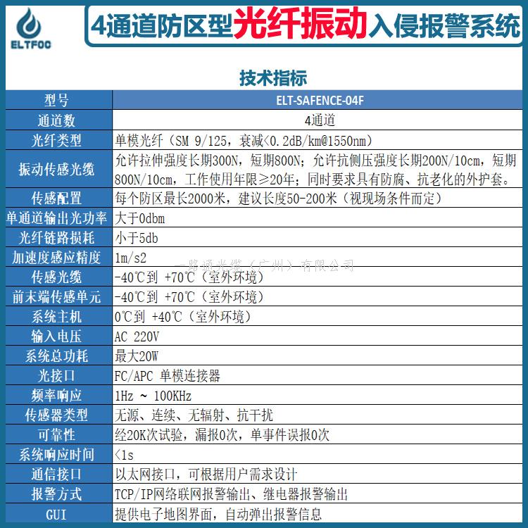 ELT-SAFENCE-04F系列产品是区域型报警系统。设备采用模块化结构,可以单模块独立使用,也可以进行多模块组网。每个防区的防护范围根据现场情况而定,针对不同防区,可分别设置报警参数。