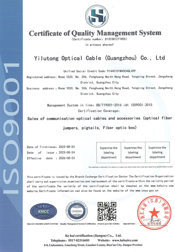 质量管理体系认证证书