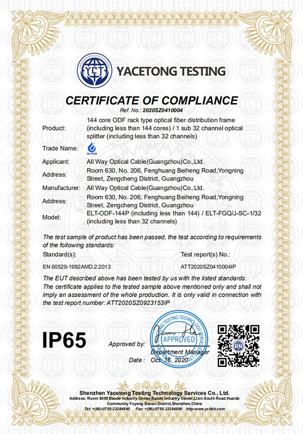 IP65认证证书
