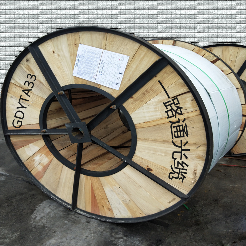 GDYTA33光电混合缆的结构是将单模或多模光纤套入由高模量的聚酯材料做成的松套管中,套管内填充防水化合物。 缆的中心是一根金属加强芯,松套管和填充绳围绕中心加强芯绞合成紧凑的圆形缆芯,缆芯内的缝隙充以阻水填充物,内置电源线然后用双面镀铬涂塑钢带(PSP)纵包后覆以聚乙烯内护套,内护套外一圈钢丝铠装,最后用聚乙烯外护套成缆。