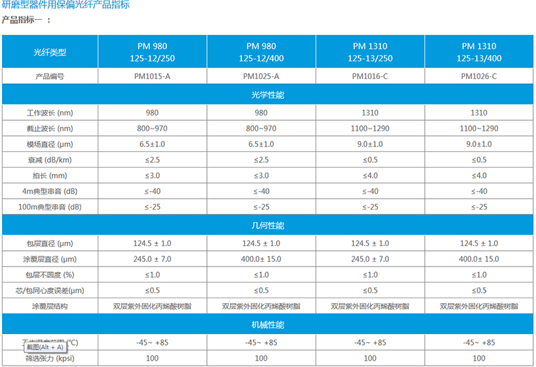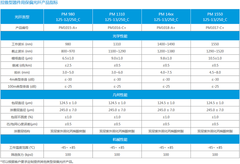 *可以根据客户要求定制提供其他类型保偏光纤产品。