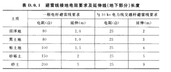 3.1避雷线接地电阻要求及延伸线(地下部分)长度
