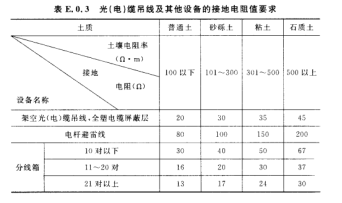 3.2光(电)缆吊线及其他设备的接地电阻值要求